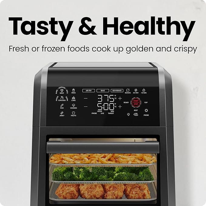 ✅ Precision Temperature Control — Adjustable from 95°F to 450°F with rapid air heating technology. Includes the smart Hi-Fry option for an extra crispy finish when you need that perfect crunch.
